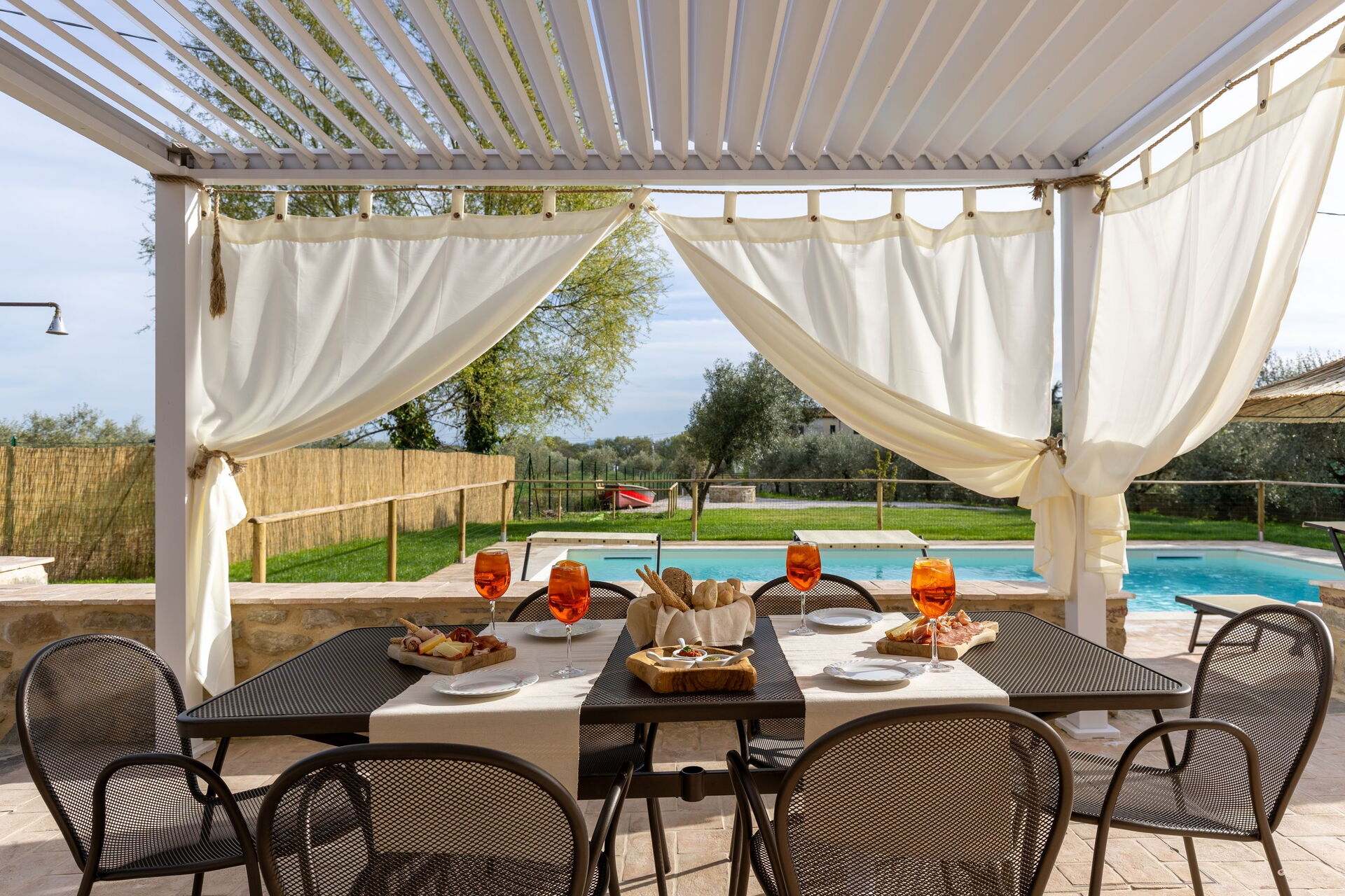 Het huis is onlangs gerenoveerd en omgevormd tot een uitnodigend vakantiehuis met 3 slaapkamers en kan gemakkelijk plaats bieden aan 6/7 personen. Op het terrein is een mooi zwembad en een goed onderhouden tuin volledig ter beschikking van de gasten. Op het terras tussen het huis en het zwembad staat een splinternieuwe pergola – de perfecte plek om buiten te lunchen of dineren.