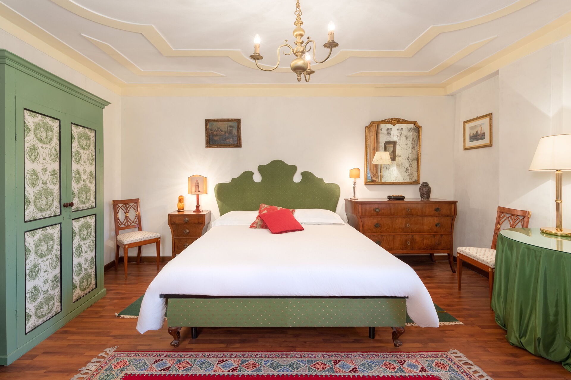 Villa Marcello was altijd een privéwoning, een plaats van glamour en elegantie; altijd open voor gezellig plezier en tegelijkertijd een warm gastvrij huis. Graaf Vettor Marcello en zijn gezin wonen hier nu en openen graag de deuren voor degenen die de verfijnde pracht willen waarderen. De villa is een mooi en ongerept voorbeeld van renaissance architectonisch evenwicht. Het 16e-eeuwse complex in Palladiaanse stijl is gestructureerd met een centraal hoofdgebouw dat aan beide zijden wordt geflankeerd door arcadenvleugels (waarvan er één de woning huisvest die we hier te huur aanbieden) die een tuin in Italiaanse stijl omringen met een fontein, Griekse mythische beelden, bloembedden, gazons en struiken.