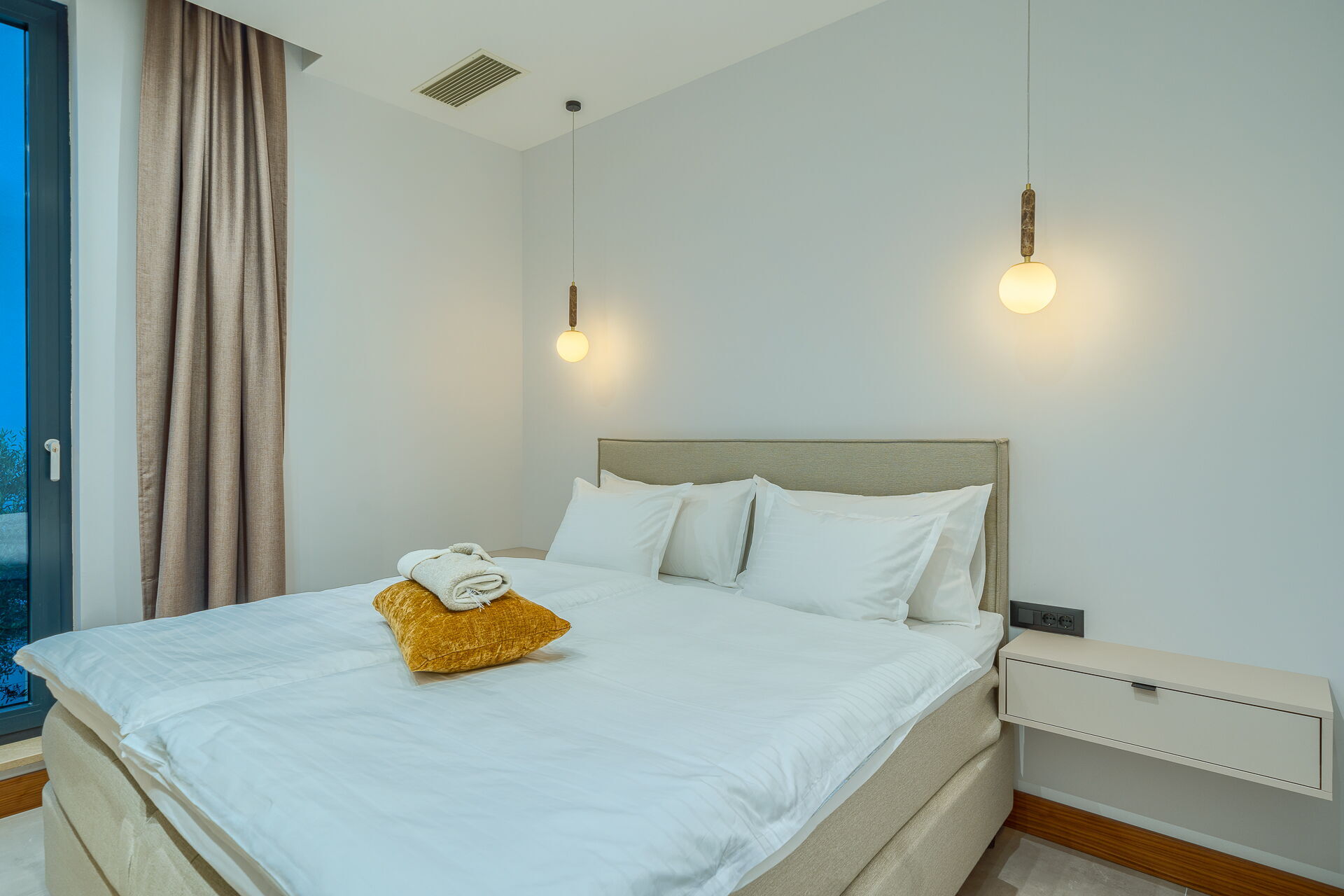 - 3 tweepersoonsslaapkamers (met kingsize bed, airconditioning) met eigen badkamer