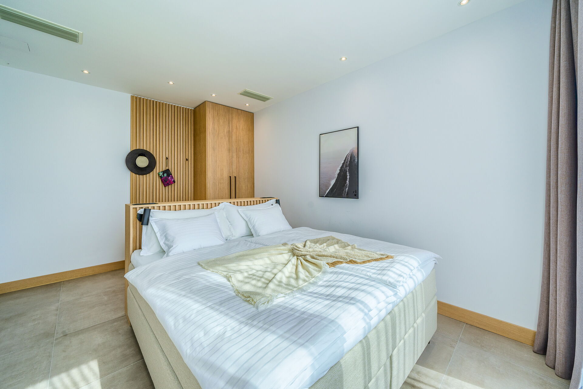 - 2 tweepersoonsslaapkamers (met kingsize bed, airconditioning) met gedeelde badkamer