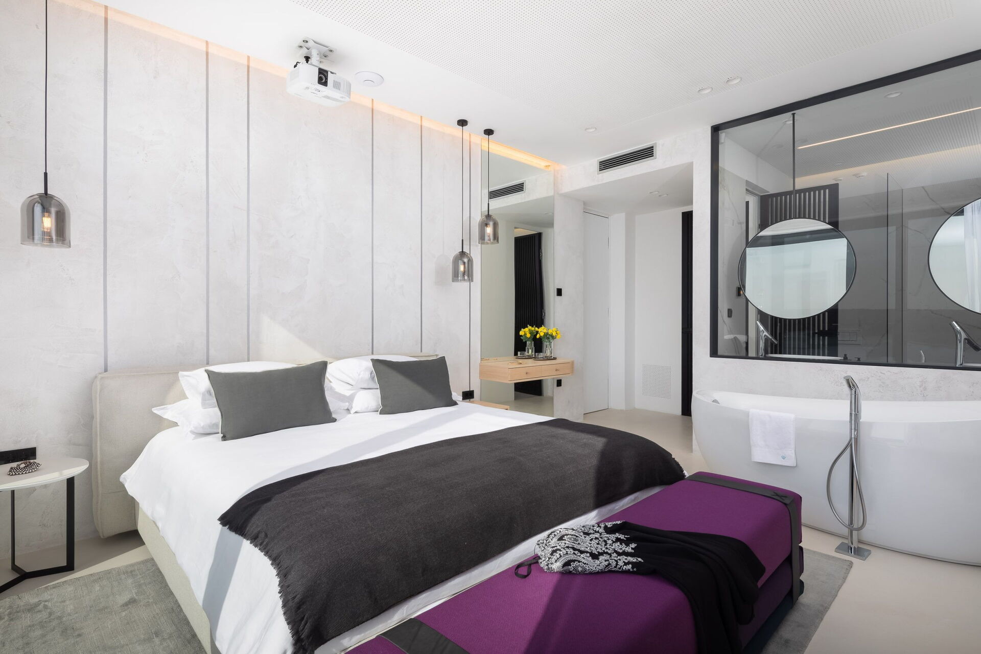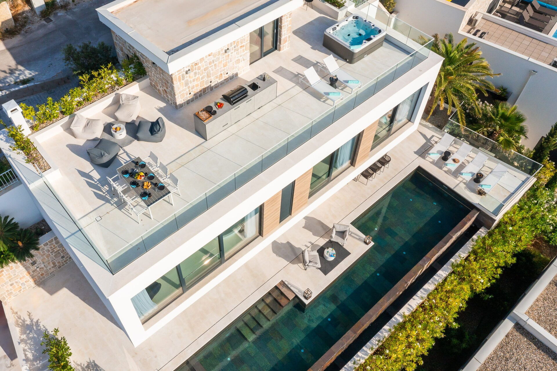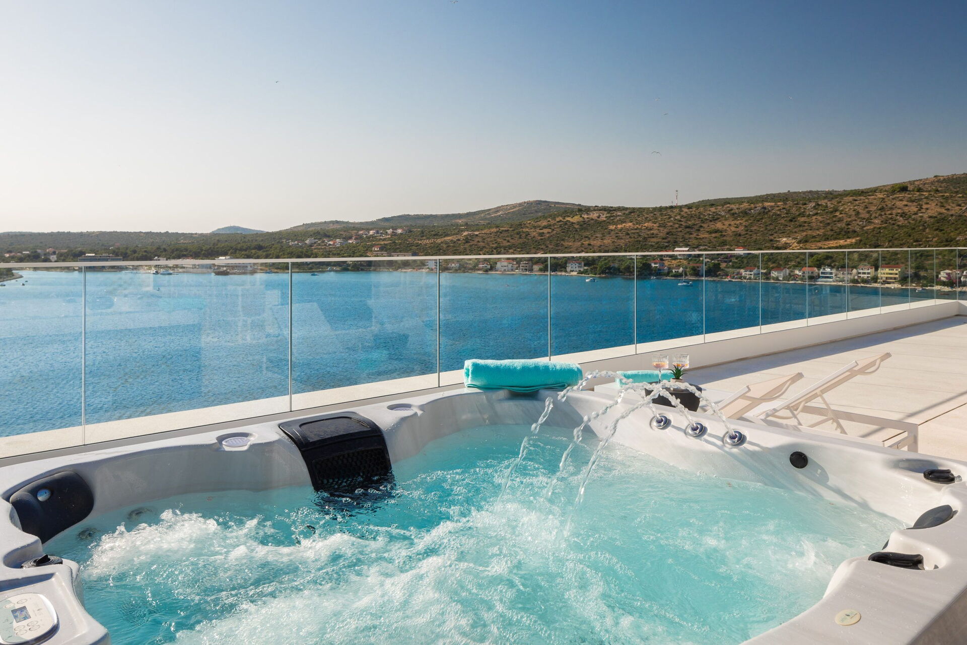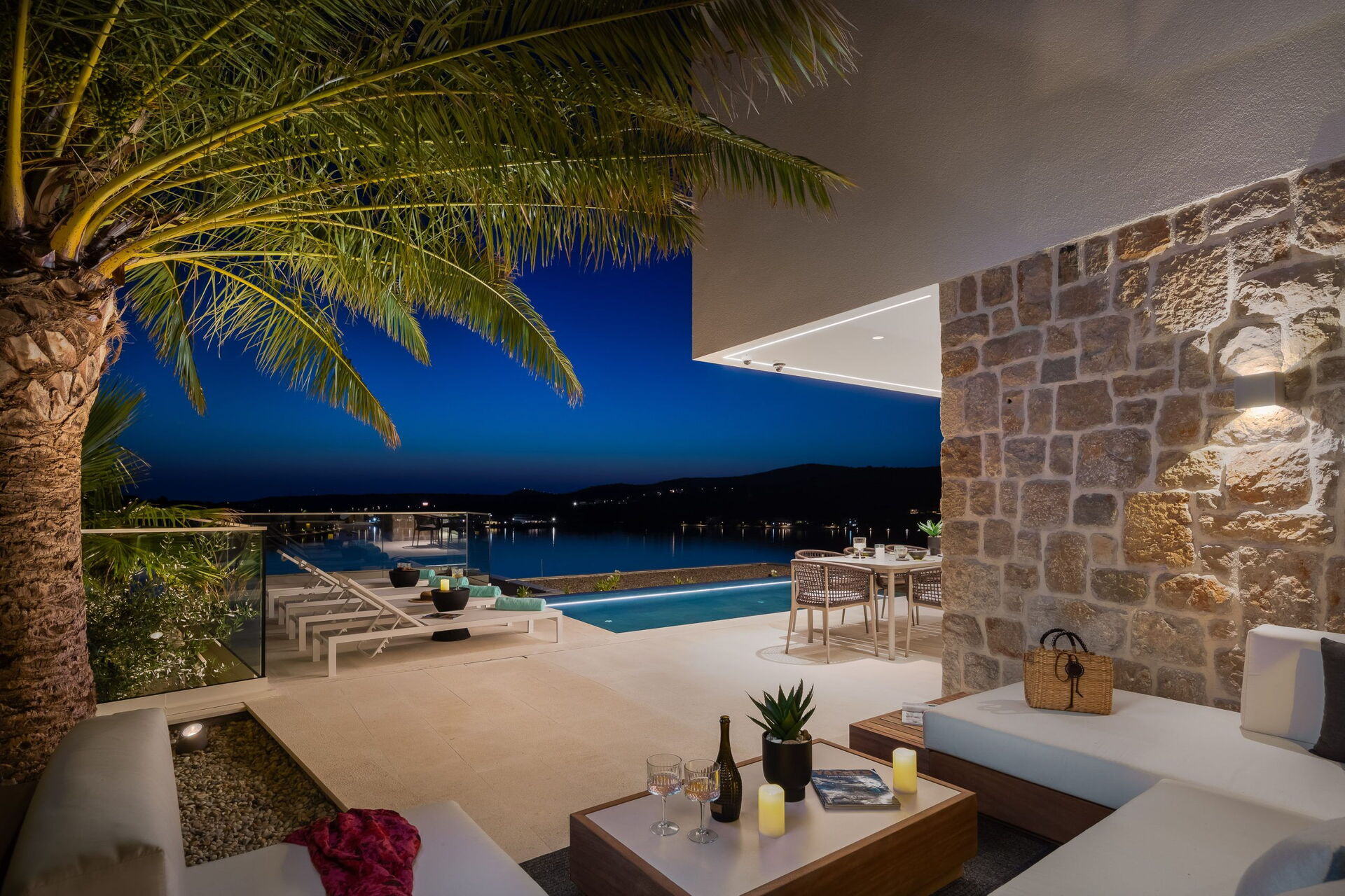 Er zijn veel gemeenschappelijke buitenruimtes met een schilderachtig uitzicht waar gasten tijd kunnen doorbrengen met familie of vrienden. Ontspan en dineer op het dakterras, dat een buitenkeuken, barbecue en hot tub heeft. Geniet van de Kroatische zon bij het verwarmde infinity-zwembad met uitzicht op zee.