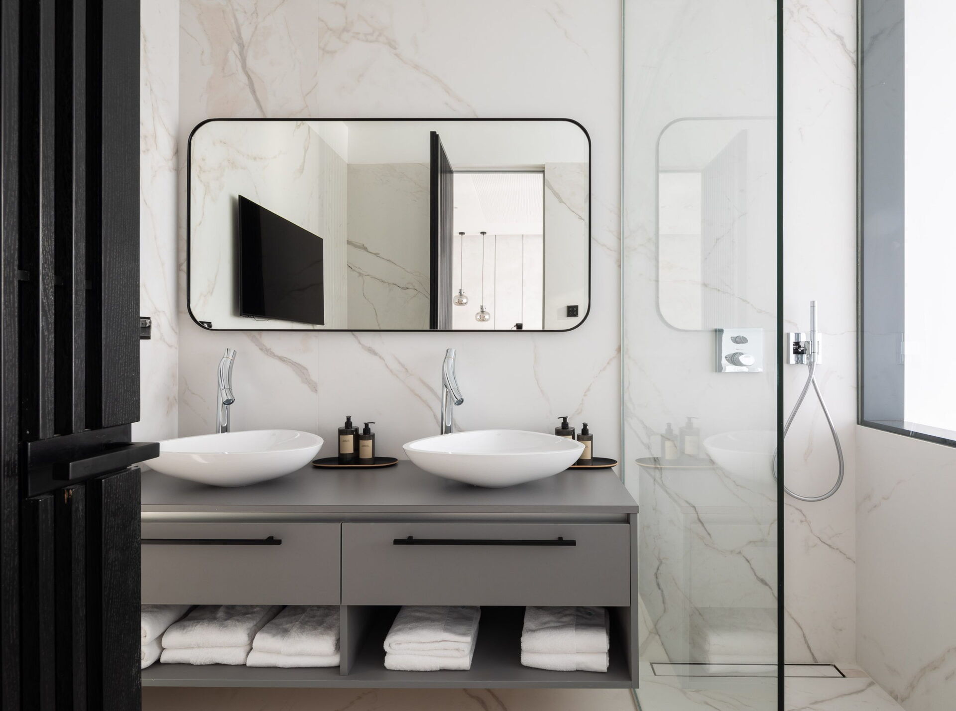 In de villa zijn 3 slaapkamers en 4 badkamers: