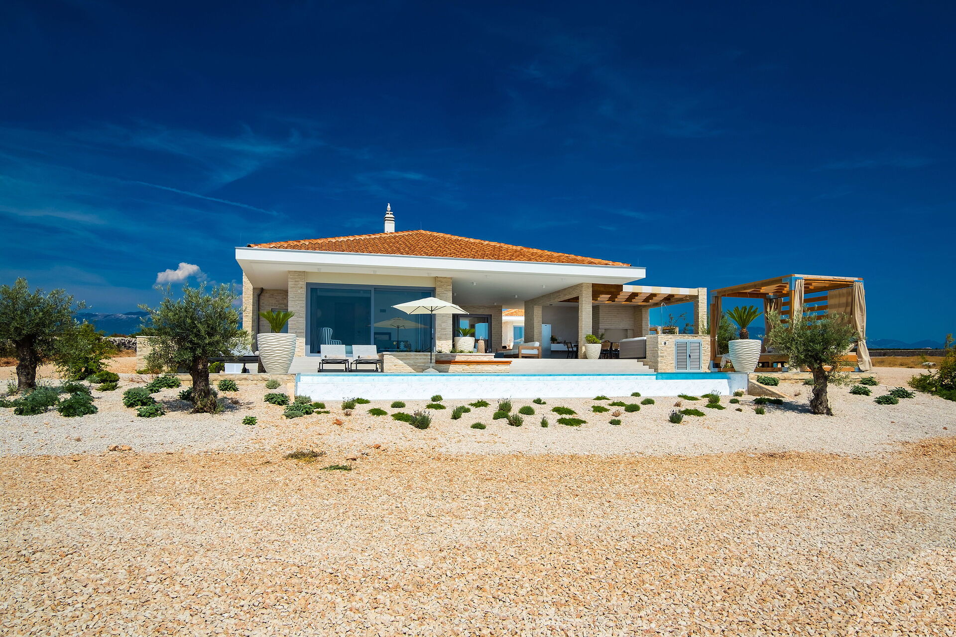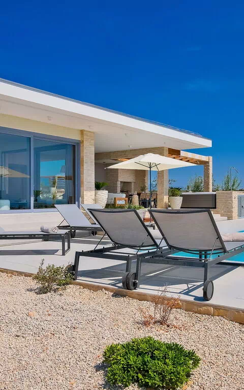 Villa Elektra is een gloednieuwe luxe villa op het eiland Pag, Kroatië.