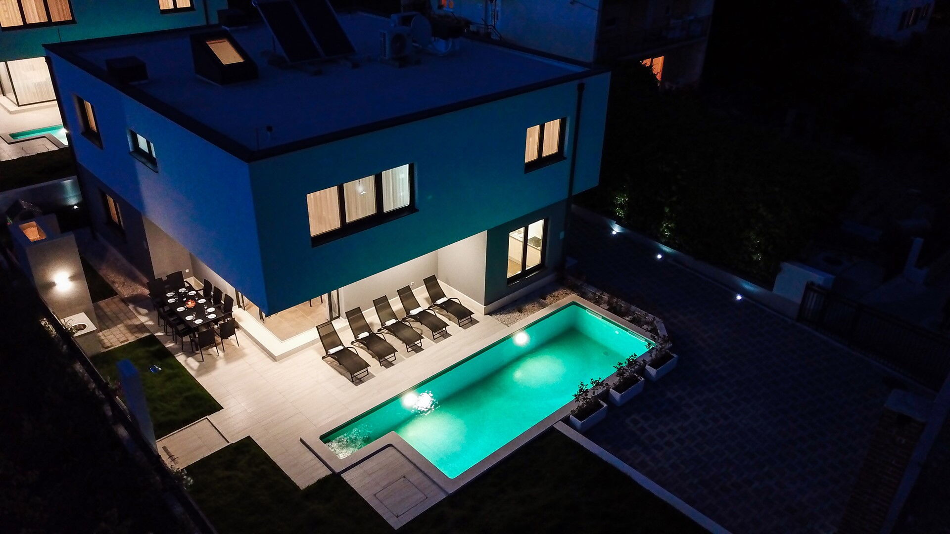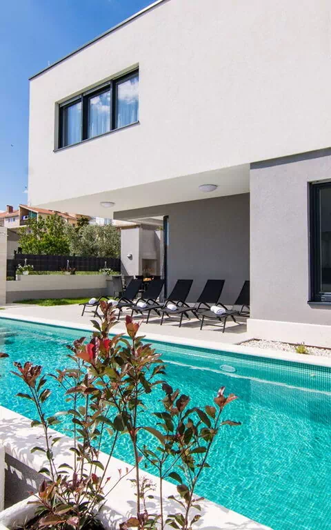 Deze luxe villa met twee verdiepingen heeft 5 slaapkamers, elk met een eigen badkamer, en biedt comfortabel plaats aan maximaal 10 personen.