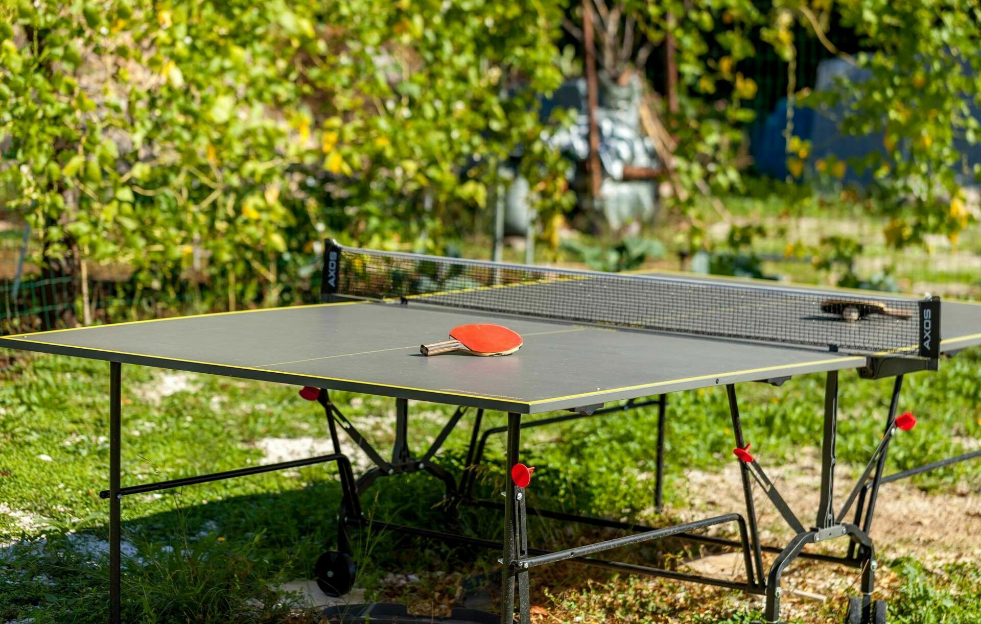 Buiten zijn de beste eigenschappen van de villa: rondom het huis zijn gemeubileerde terrassen met fruitbomen, een lounge, een eethoek en zelfs een heerlijk zwembad. Dit is de ideale plek om buiten te genieten van maaltijden en drankjes, of om warme zomerdagen bij het zwembad weg te spoelen, als alternatief voor de stranden in de buurt. Er zijn ligstoelen, parasols, tafels, stoelen, een barbecue en een speeltuin met trampoline en pingpongtafel voor jong en oud.