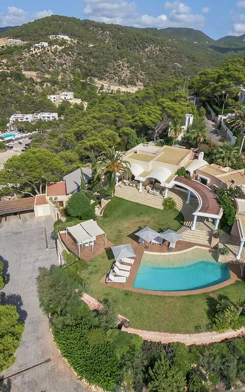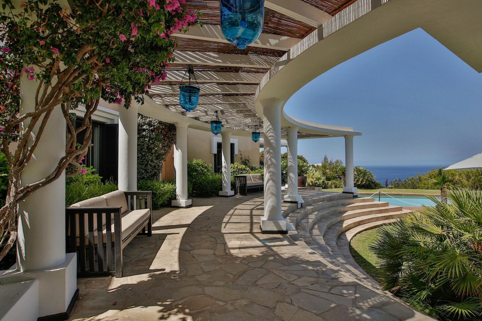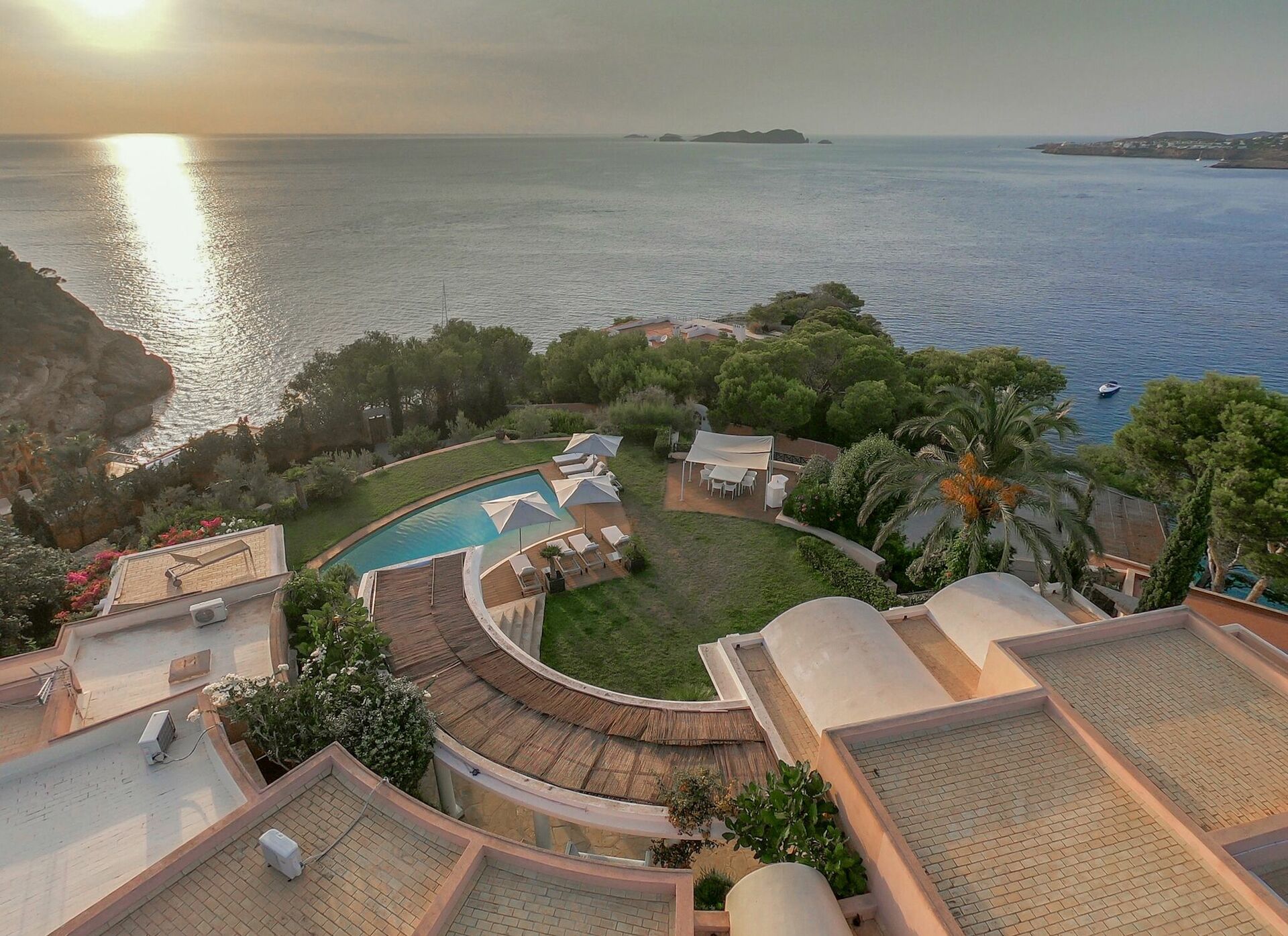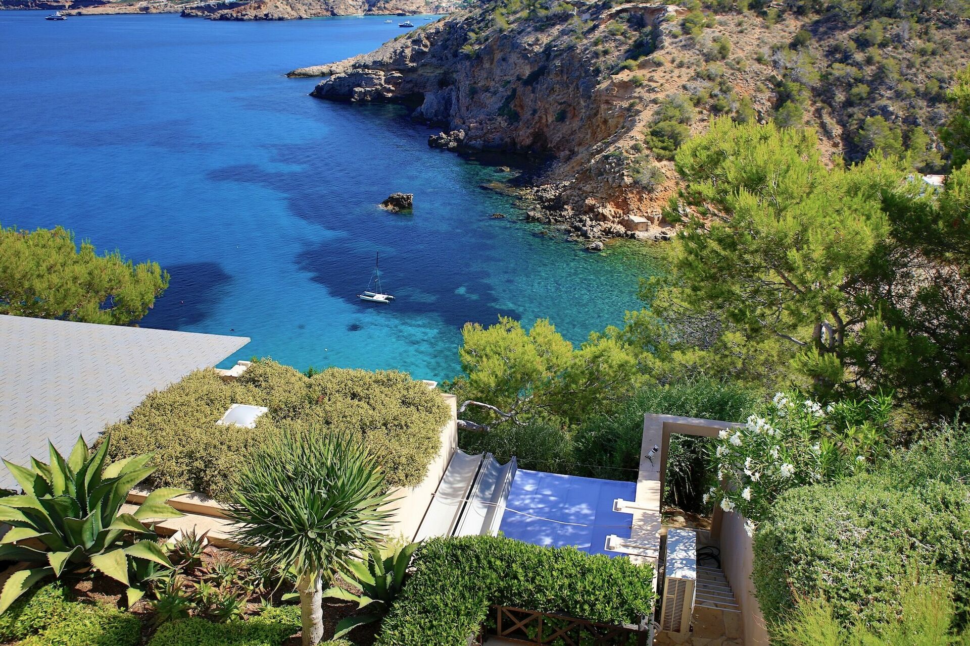 Luxe Ibiza villa te huur met uitzicht op zee nabij Cala Moli.