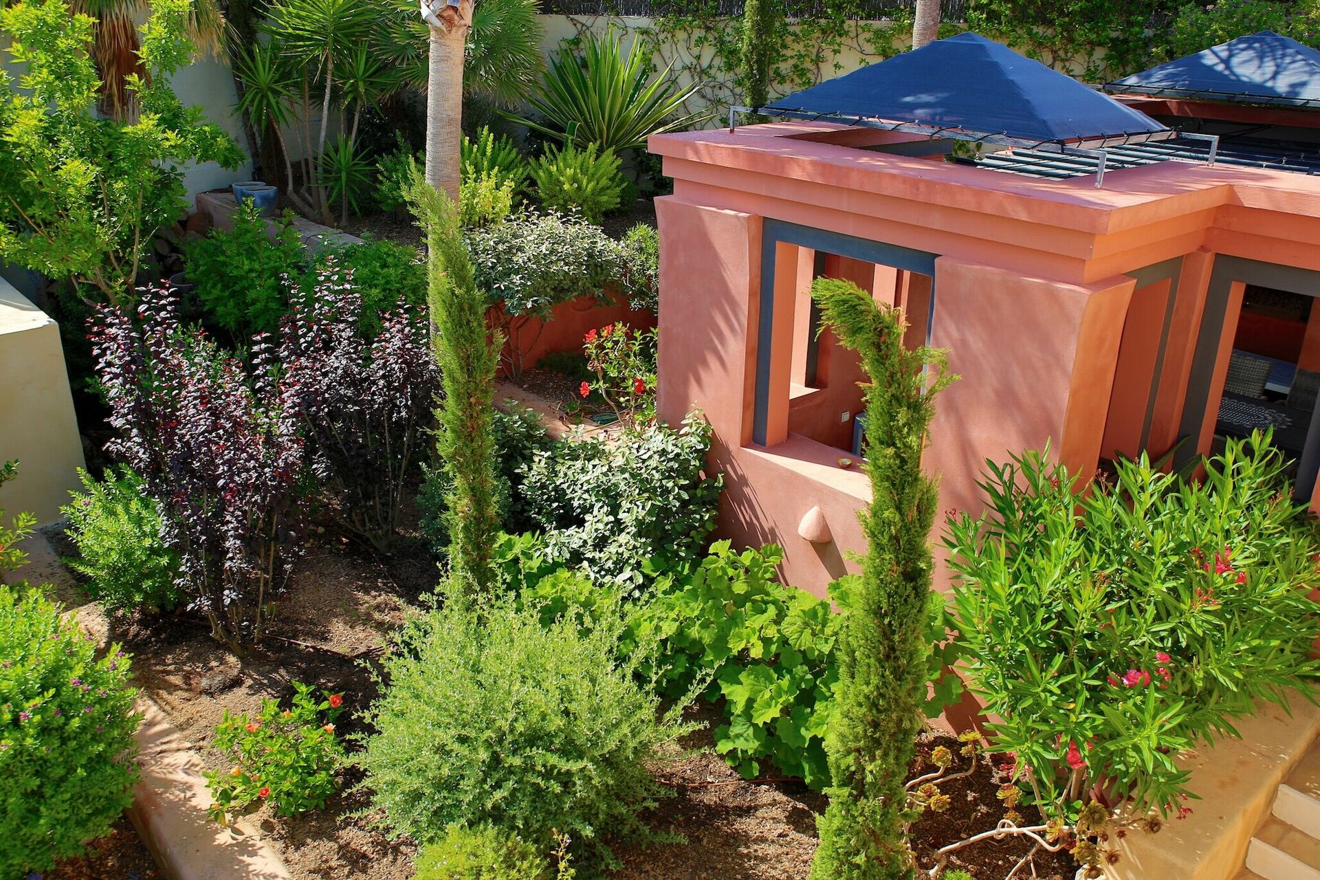 Buiten biedt Can Icarus grote patio's met banken en fauteuils; een prachtig privézwembad om af te koelen op de hete zomerdagen van Ibiza; en een barbecue met tafel en stoelen om buiten te eten en te genieten van een drankje bij zonsondergang.