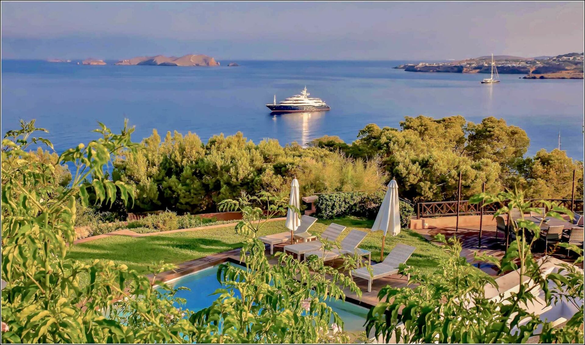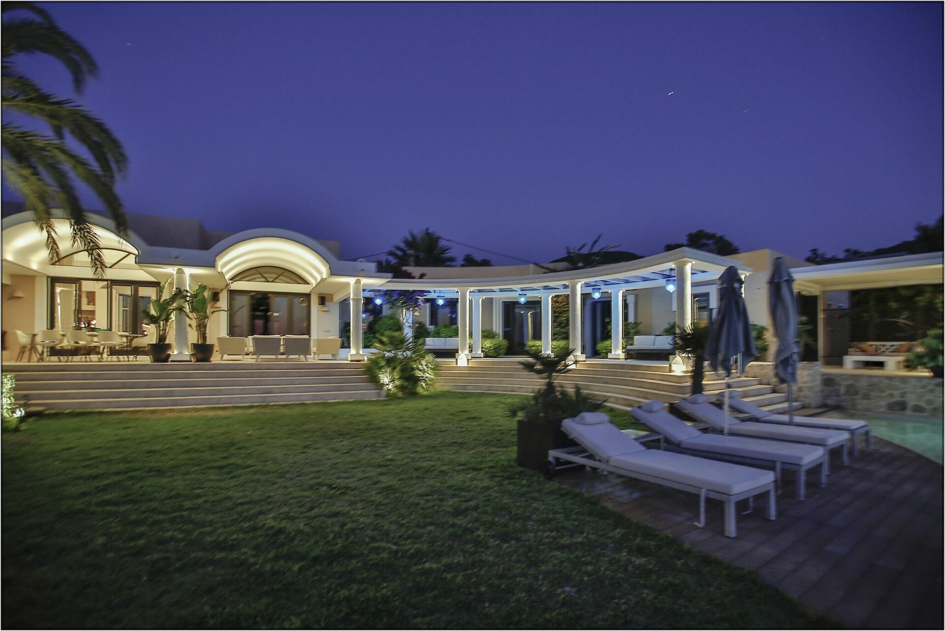 Deze prachtige halvemaanvormige woning beslaat twee verdiepingen en biedt 180 ° uitzicht over de zee en de omliggende baaien. Met 6 slaapkamers, talrijke gemeenschappelijke ruimtes en een stijlvol, elegant interieur biedt de villa plaats aan maximaal 12 personen. De grote woonkamer strekt zich uit naar de patio-lounge, waar u kunt genieten van het prachtige panoramische uitzicht en de zachte zeebries.