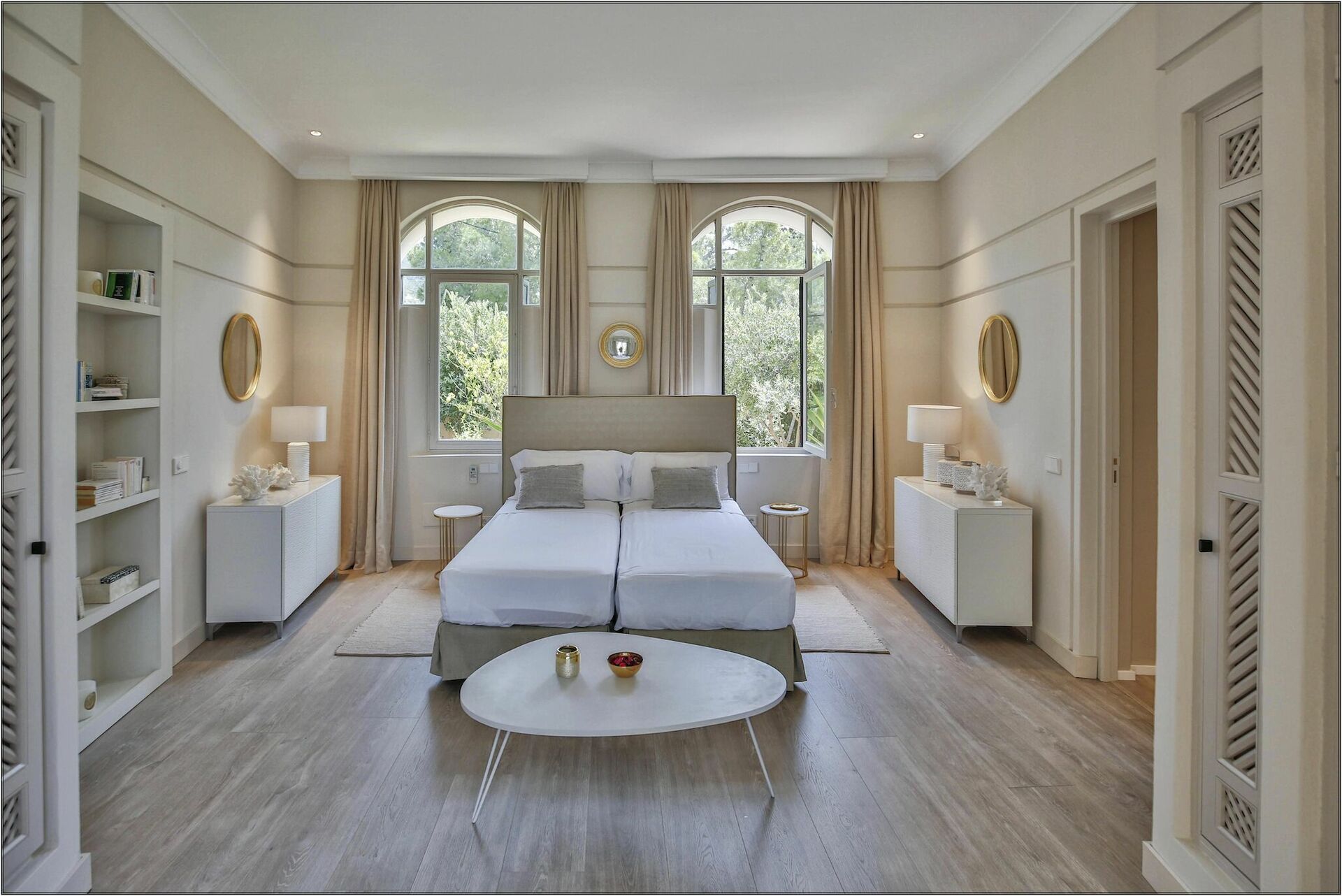 De villa heeft grote leefruimtes (salon en eetkamer), een goed uitgeruste keuken en de volgende 6 slaapkamers:
